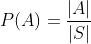 여기서 ∣A∣는 사건 A에 속하는 경우의 수, ∣S∣는 표본 공간 S의 전체 경우의 수입니다.