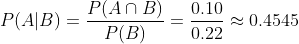 두 사건의 교집합 확률 P(A∩B)는 다음과 같이 계산됩니다.