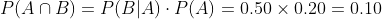 조건부 확률 공식에 따라 P(A∩B)를 먼저 구합니다.