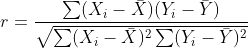 상관계수 r는 다음과 같이 계산됩니다.