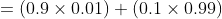 먼저, 테스트가 양성일 확률 P(T)을 구합니다.